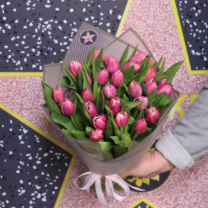 Авторский букет с пионами тюльпанами и эрингиумом / 1378 id